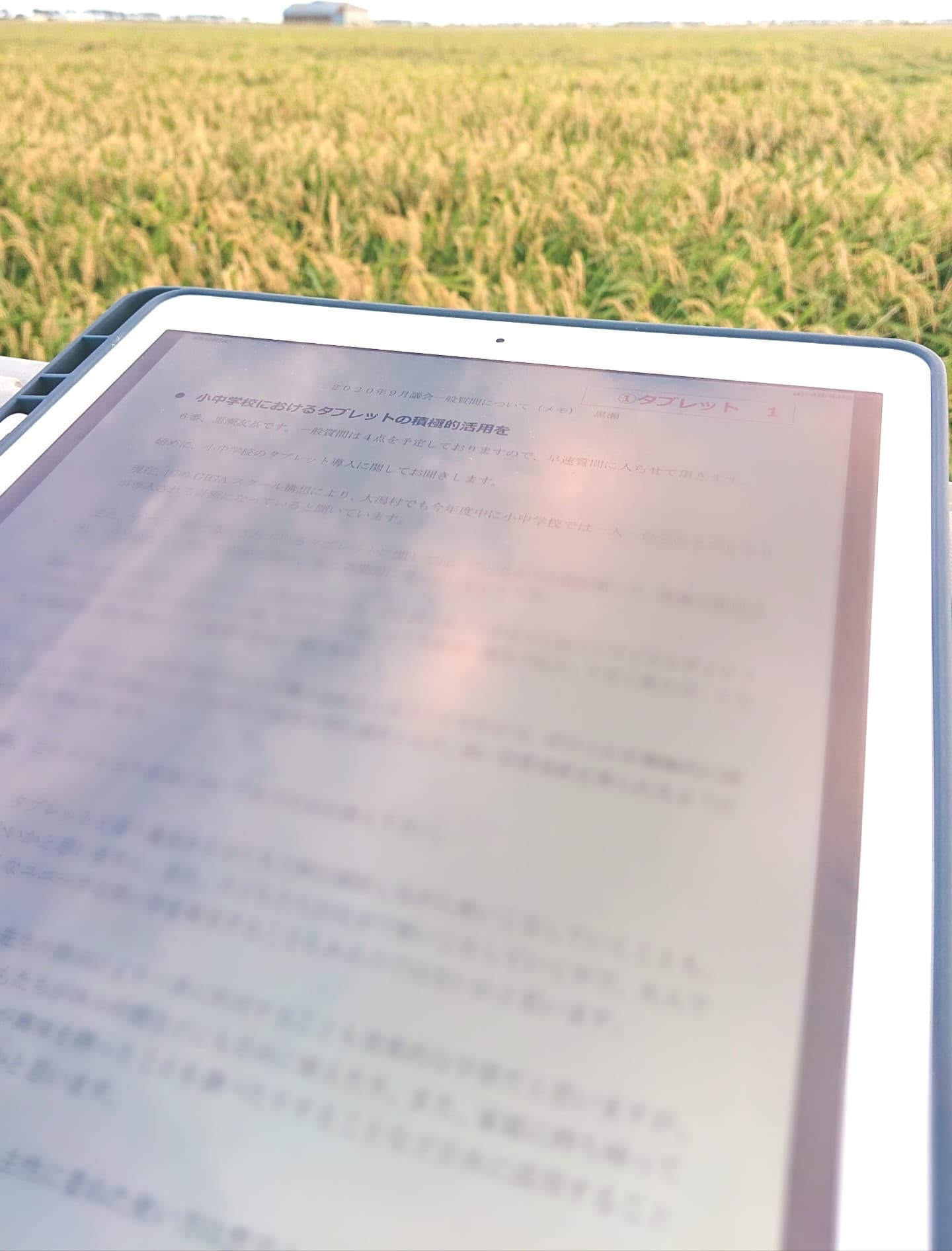 ただ、今回、一般質問で小中学校のタブレット導入に関して、質問するので、自分の質問もタブレットに原稿を入れて挑みたいと思います。