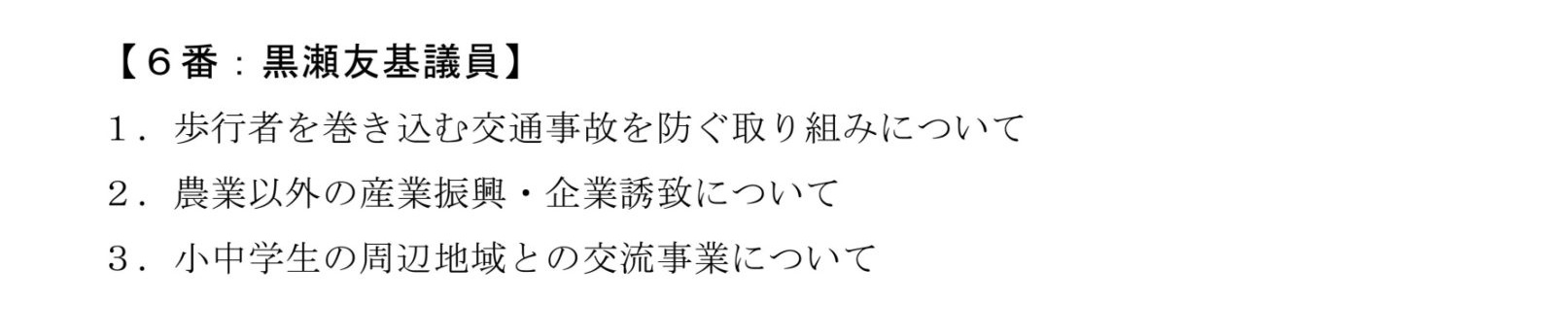 ところで、今回の1番目の交通事故防止と2番目の産業振興については、もちろん具体的な対策や事業計画は聞きたいのですが、「もっと根底にある村当局へ考えて欲しいこと」は、実はその2つで共通だったりします。