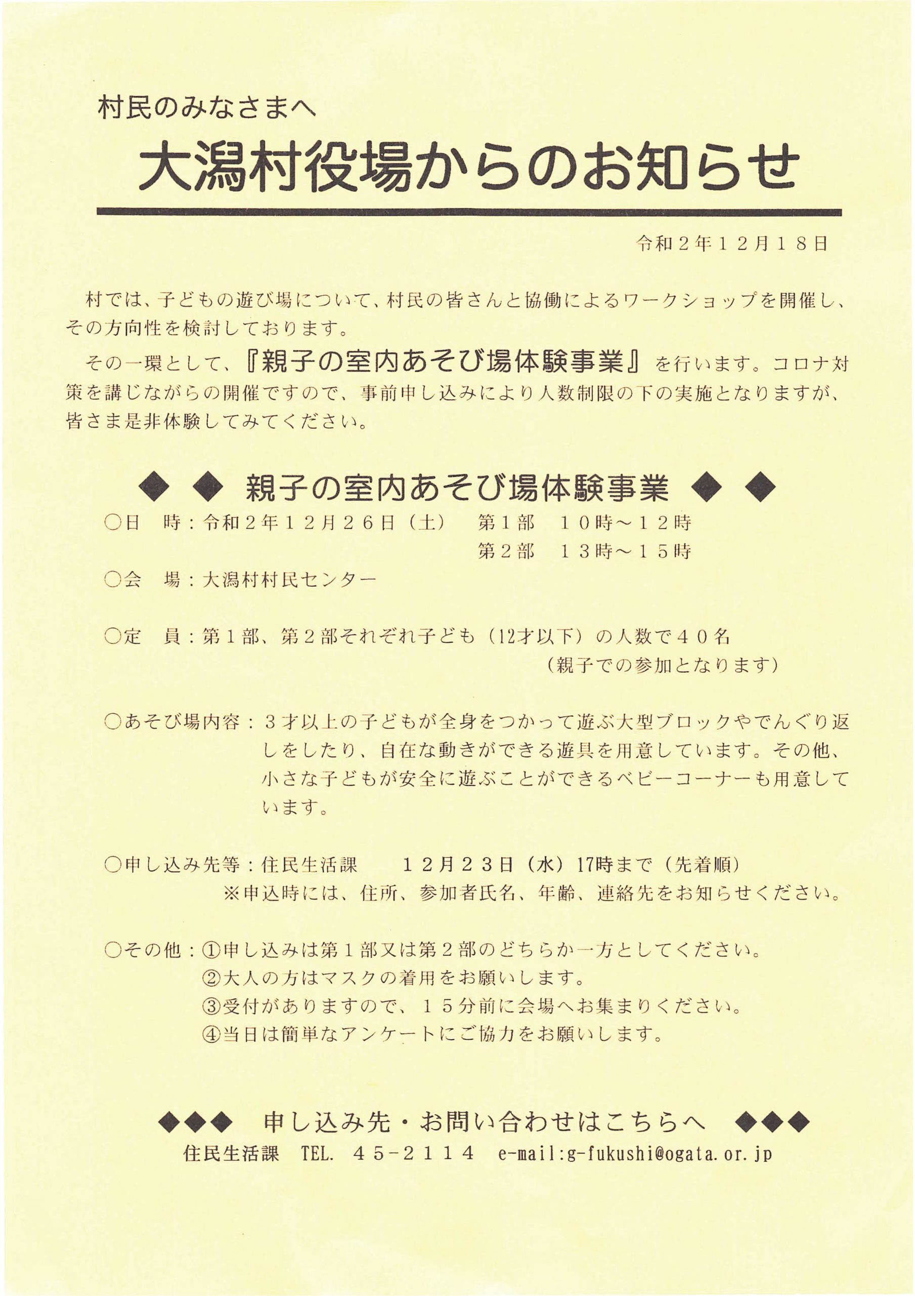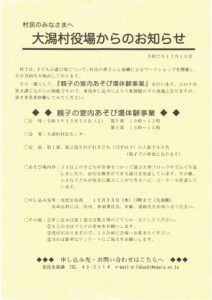その一環として、村内の子どもたち向けに室内遊び場を体験できる事業が行われます。