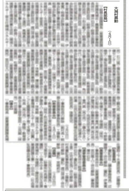本日3/24の地元紙(秋田魁新報14面)に大潟村の人事異動が掲載されていました。