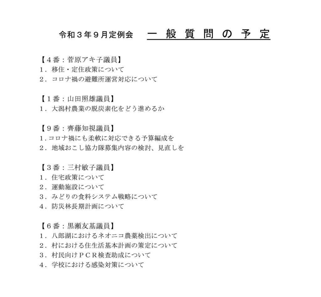 それぞれの村政報告、一派質問部分から見ることが可能です。