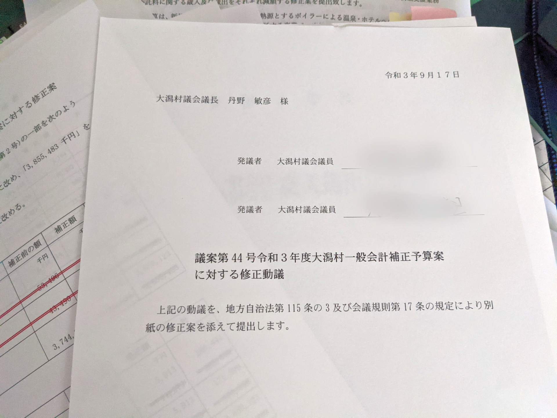 (議会の意見に基づき、村当局側が修正や議案の取り下げを行ったことはありますが、議員側が動議を出したのは珍しいようです)