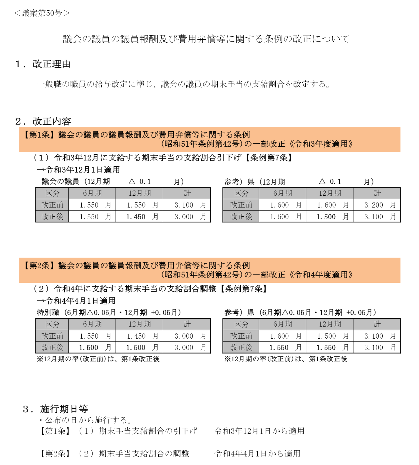 本日、臨時議会があり、一般職及び特別職、議員の期末手当(賞与)の改定が全会一致で決まりました。